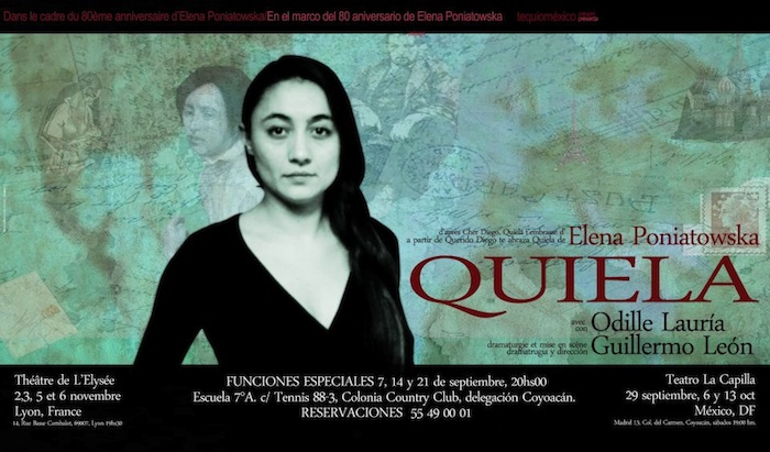 La obra teatral Quiela, basada en el libro Querido Diego te abraza Quiela, de Elena Poniatowska, se presenta en el Teatro La Capilla a partir de este sábado 29 de septiembre, y posteriormente iniciará una gira por Francia.