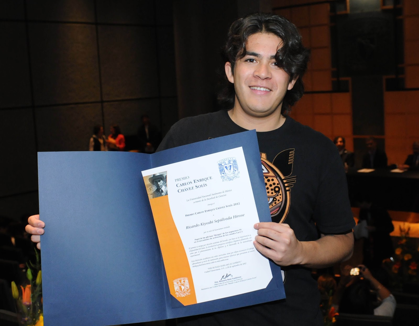 Ciudad de México, México, 23/10/12, (N22).- Por la importancia y originalidad del tema, la claridad de la pregunta científica e hipótesis, así como por el planteamiento de los objetivos y el desarrollo de la metodología experimental, Ricardo Kiyoshi Sepúlveda Hirose obtuvo el Premio Carlos Enrique Chávez Solís 2012, por su trabajo de tesis Papel de las glicinas “Bisagra” de los segmentos S6 en el mecanismo de activación de los canales CaV3.3.