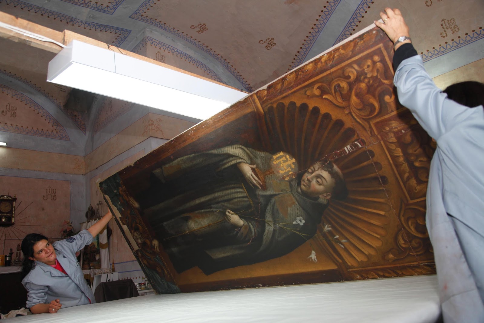 “Debido a que las obras pictóricas tienen pérdida de los fondos, se decidió respetar los repintes hechos en el siglo XIX; además se les dio estabilidad estructural, una limpieza detallada y una ligera reintegración de color”, anotó Velázquez de León Collins.