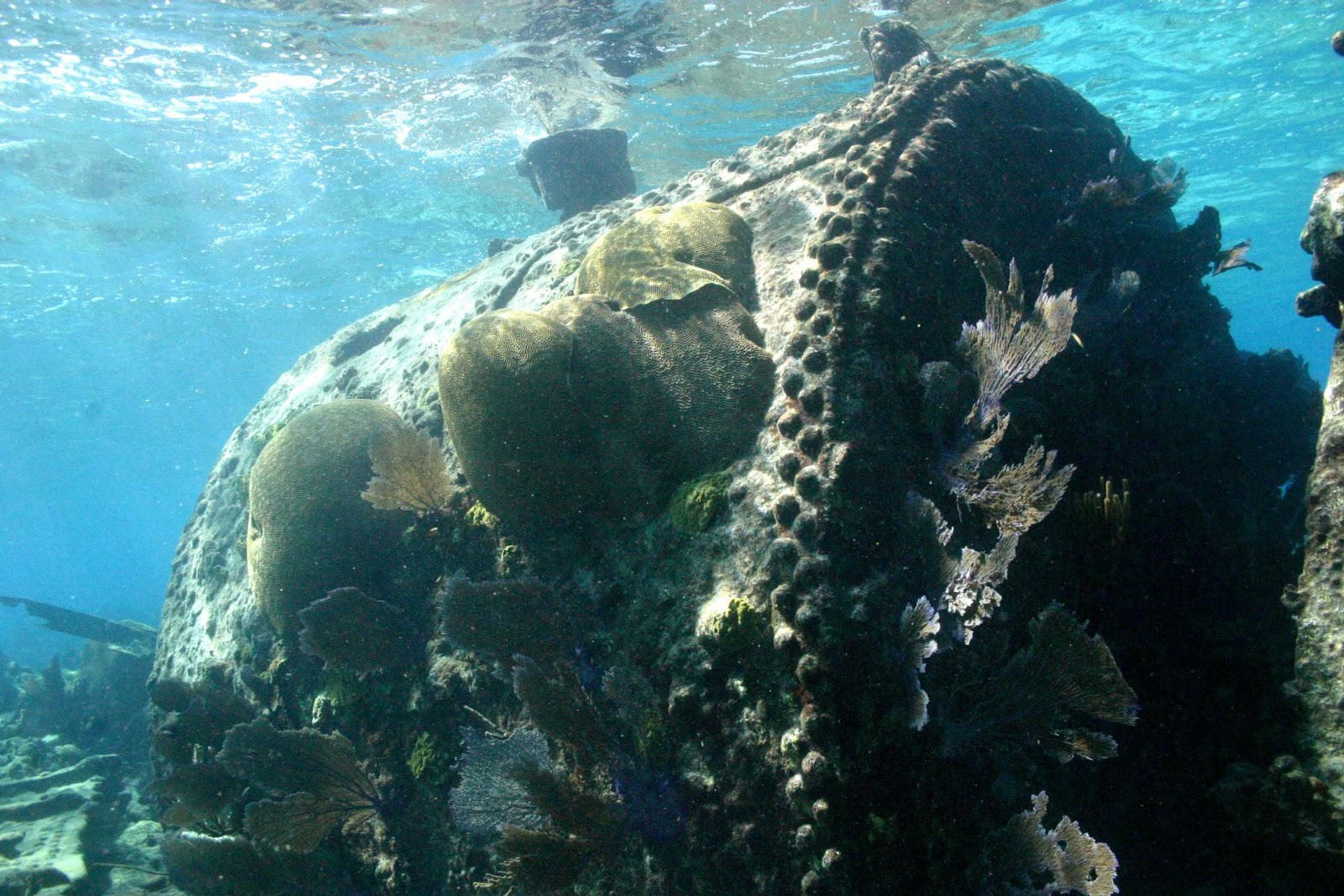 Asimismo, se observa un gran barco de vapor que encalló en el siglo XIX; la caldera, parte esencial de la maquinaria, sigue con la misma posición como debió llevarse a bordo, solo que ahora está cubierta de enormes colonias de corales cerebro.