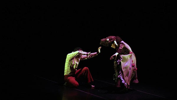 El pequeño, se tranforma en escena, a veces es un bailarin y otras es una marioneta, y ve a su amorosa madre convertirse en un toro. Las marionetas fueron creadas por Edwin Salas, quien con sus manos transfiere movimiento y voz a un inquieto Pablo.