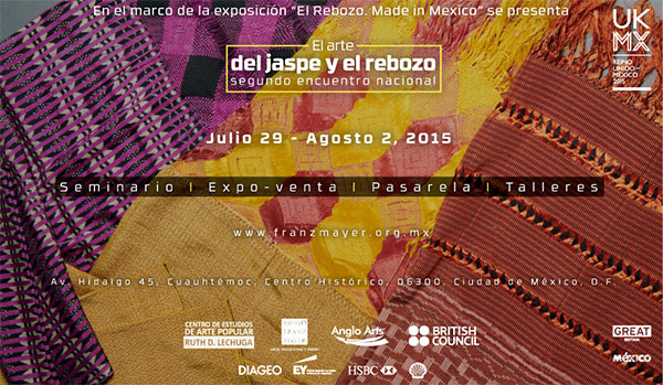 - Del 29 de julio al 2 de agosto el Museo Franz Mayer será sede el encuentro El arte del jaspe y el rebozo, en el que el público podrá disfrutar además de demostraciones de reboceros, talleres, una pasarela y la posibilidad de adquirir una pieza de estas, una de las indumentarias con más identidad en nuestro país.