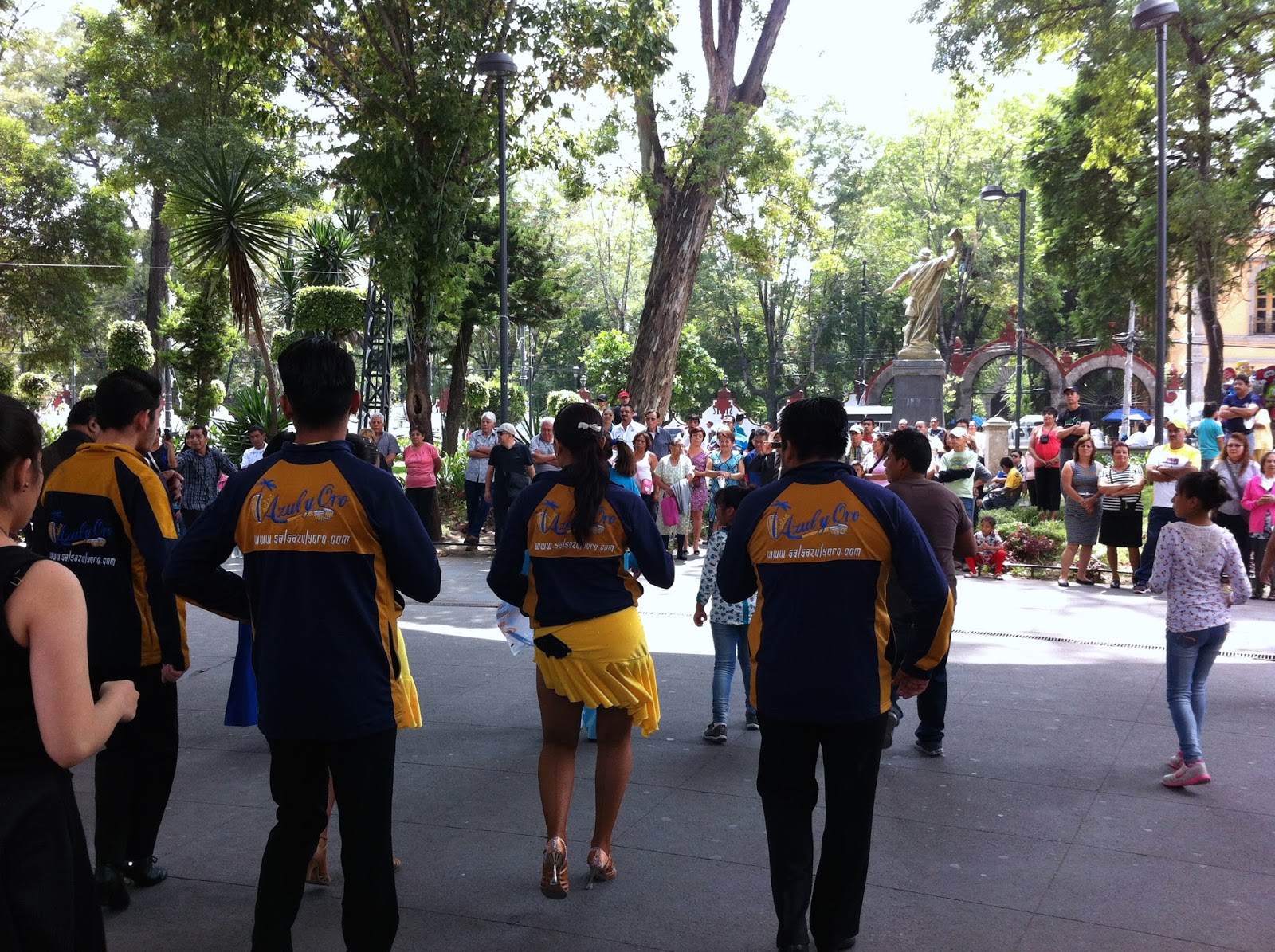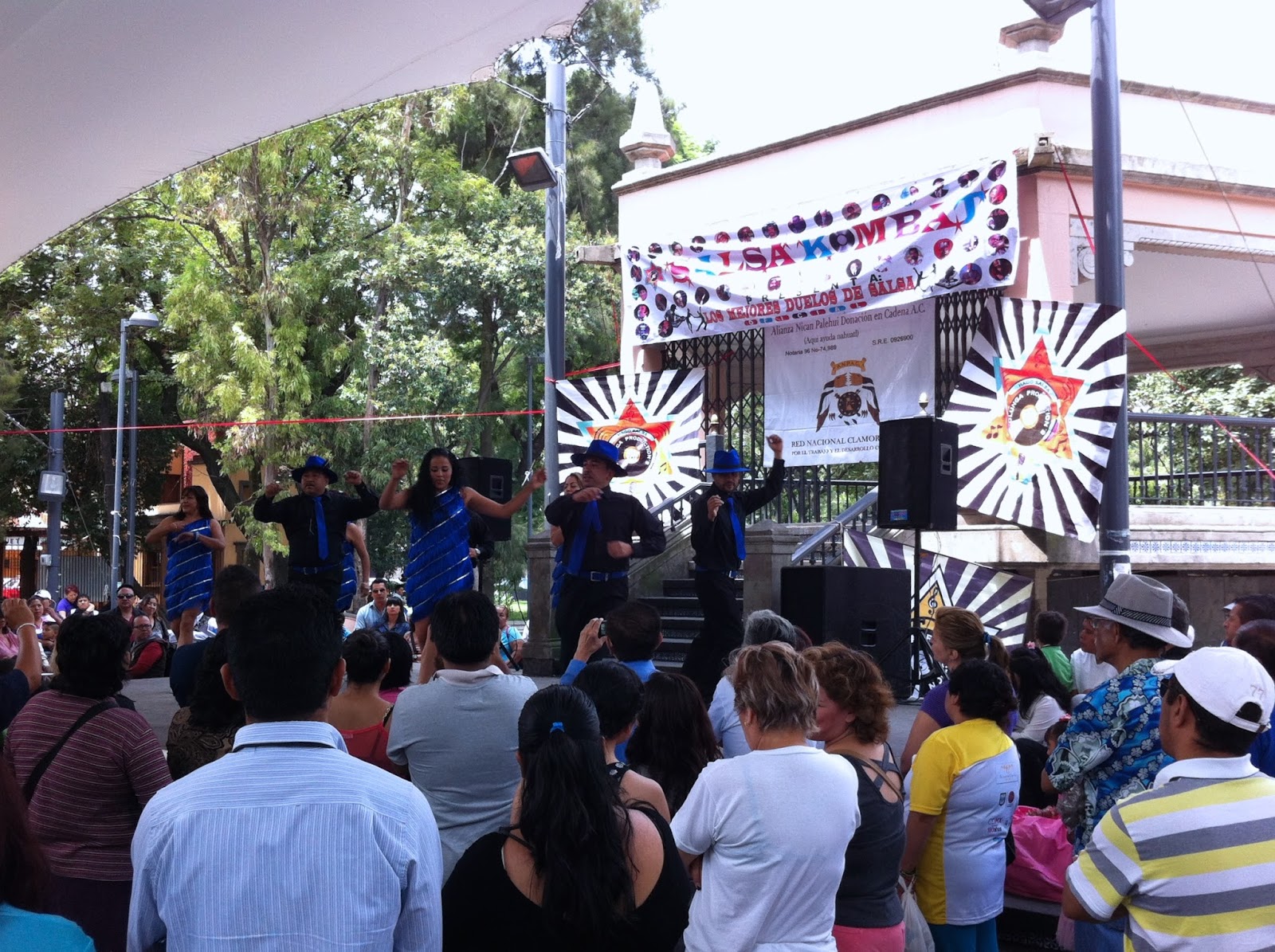 que desplegaban diversas lonas que anunciaban la exhibición de baile Salsa