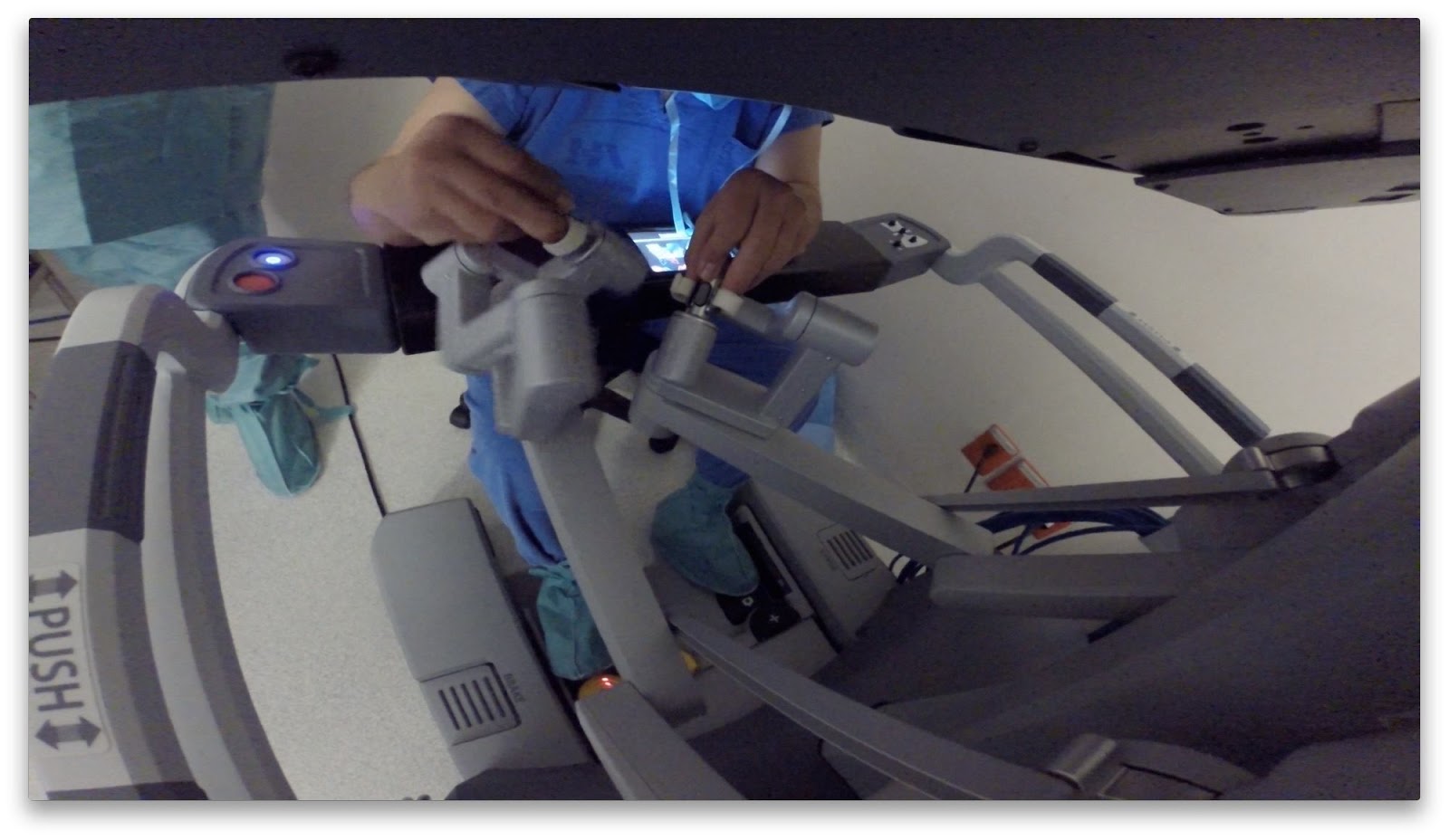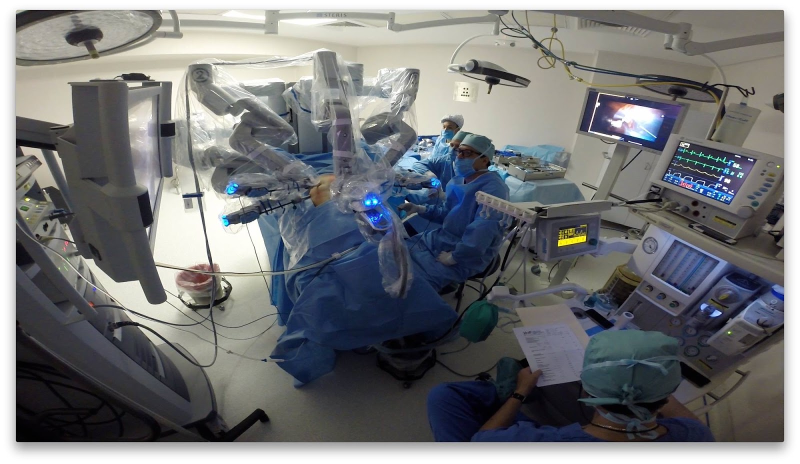 El robot con el que se realiza la operación está conformado por tres módulos: el primero tiene una camilla y cuatro brazos robóticos, en estos están los instrumentos (pinzas, tijeras y un sujetador), además de la cámara; en el módulo central están las pantallas, consolas y energía; por último se encuentra la consola donde el urólogo opera, allí hay un visor en 3D, además de los controles manuales que permiten dirigir los instrumentos.