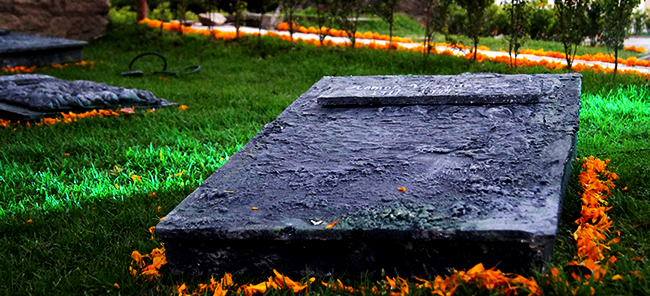 una calavera invitaban a los transeúntes a permanecer a su lado, o a tomarse la