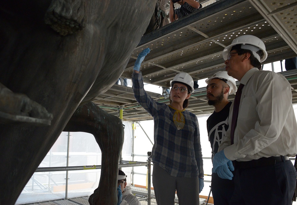 restaurar la escultura ecuestre de Carlos IV y recuperar su estabilidad, unidad y apariencia, con los auspicios